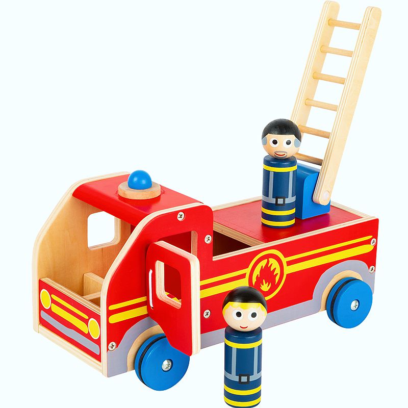 - Holzspielzeug Feuerwehrauto mit zwei Figuren