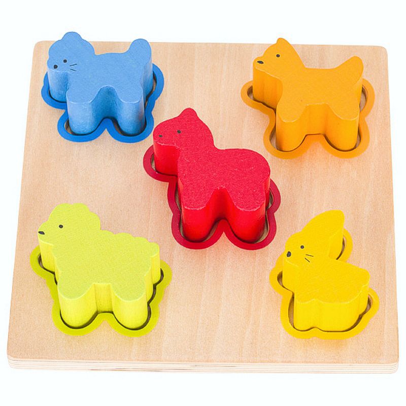 Mit diesem Spielbrett, mit fünf gut zu greifenden Tierfiguren, ist das Farben und Formen erkennen und sortieren einfach. Und für unsere Kleinsten leicht zu erlernen.
