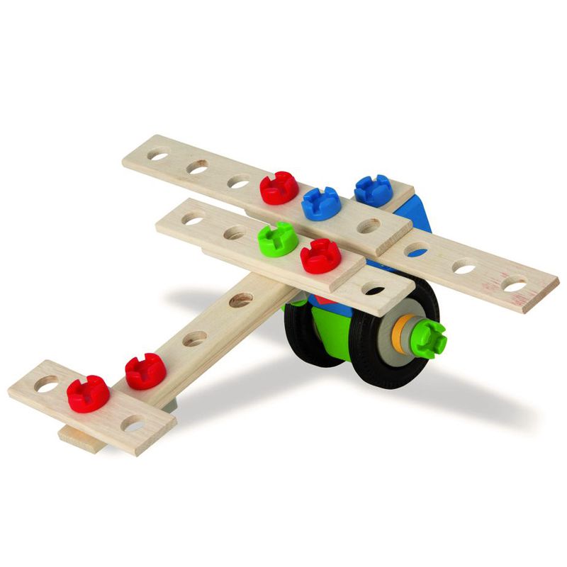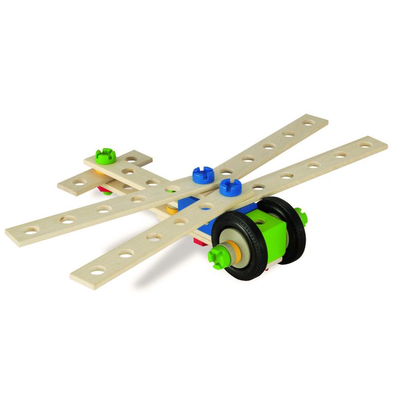 Das 40-teilige Constructor Starterset von Heros ist genau das richtige für kleine Konstrukteure. Es kann ein Flugzeug oder eine Libelle zusammengeschraubt werden. Mit den Werkzeugen und der beiliegenden Anleitung werden die Holzteile ganz schnell mit den Schrauben verbunden, der Fantasie sind dabei keine Grenzen gesetzt und es kann jedes mal eine neue Konstruktion entstehen.