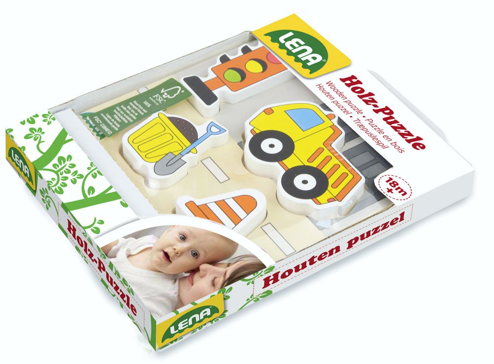 Holzpuzzle Bagger für Kinder ab 18 Monate. Das Holzpuzzle besteht aus 4 Puzzleteilen die in das Spielbrett eingelegt werden. Die Puzzleteile sind etwas dicker und können auch einzeln als Figuren zum spielen genutzt werden. LENA® Holzpuzzle Bagger Material: Holz Maße: ca.14,5 x 2,5 x 18 cm 4 Puzzleteile im Brett separat als Figuren bespielbar Hersteller: Lena Altersempfehlung: ab 18 Monate