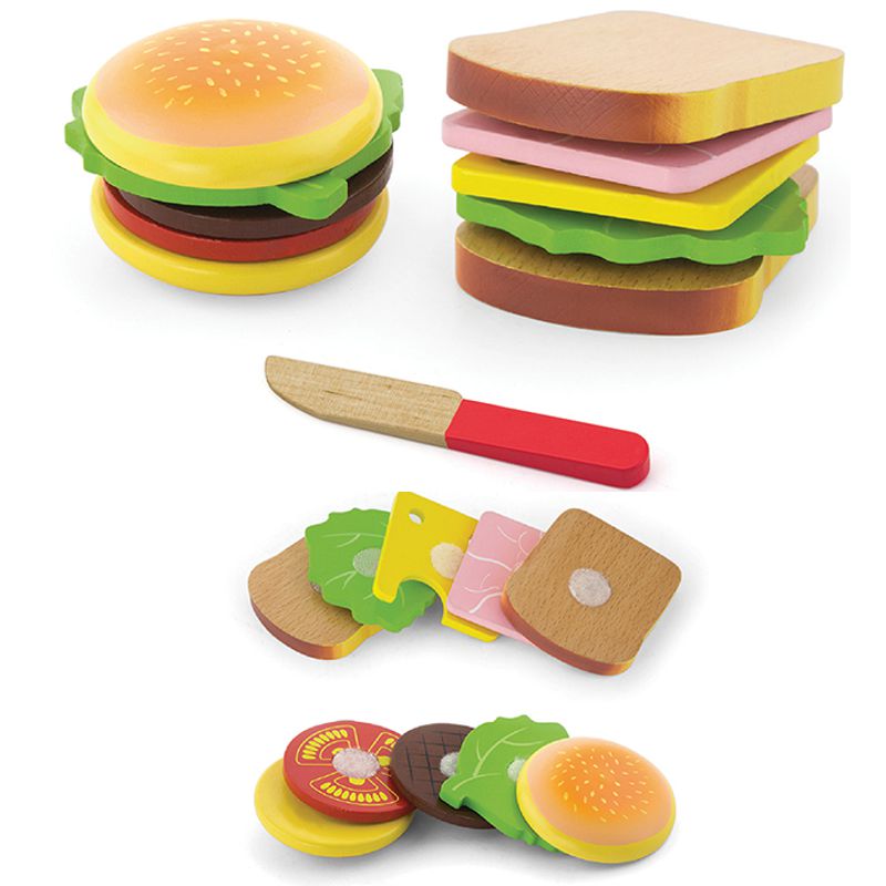 Das Schneideset mit Sandwich und Burger ist etwas für kleine Fastfoodfans, die auch mal den Burger oder das Sandwich selbst belegen wollen.